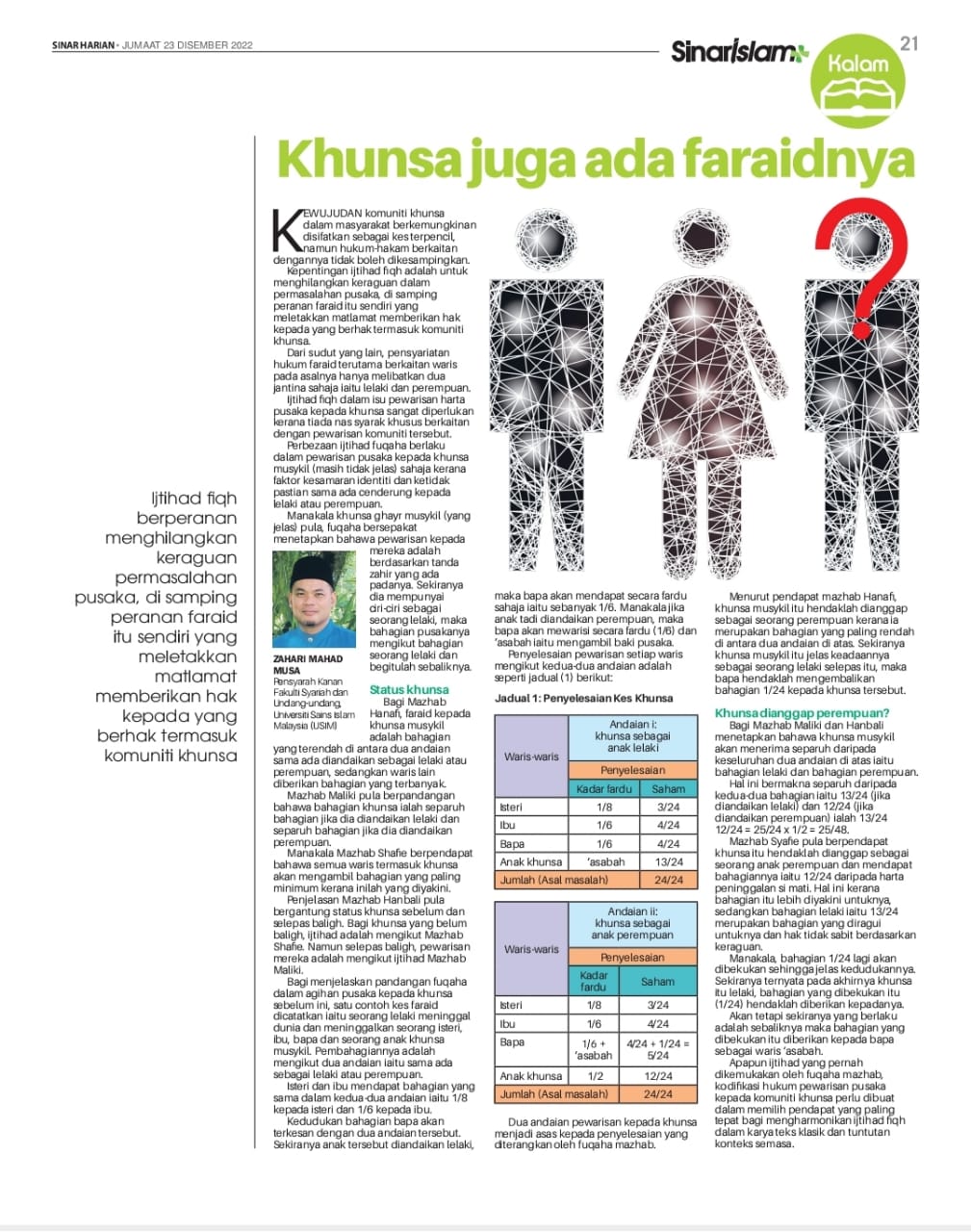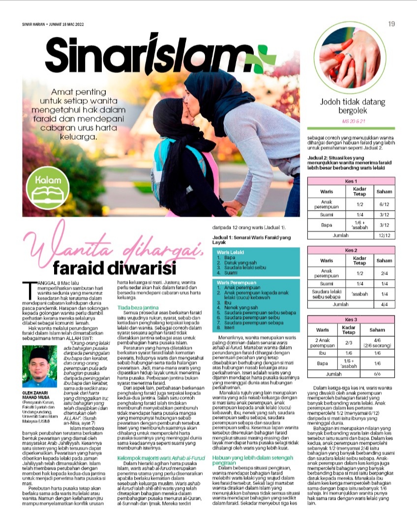 Harta Pusaka Klinik Guaman FSU USIM berkepakaran dan sentiasa bersedia membantu perihal pengurusan harta pusaka. Hak waris dan keharmonian pewarisan harta adalah tuggak yang wajib dipelihara